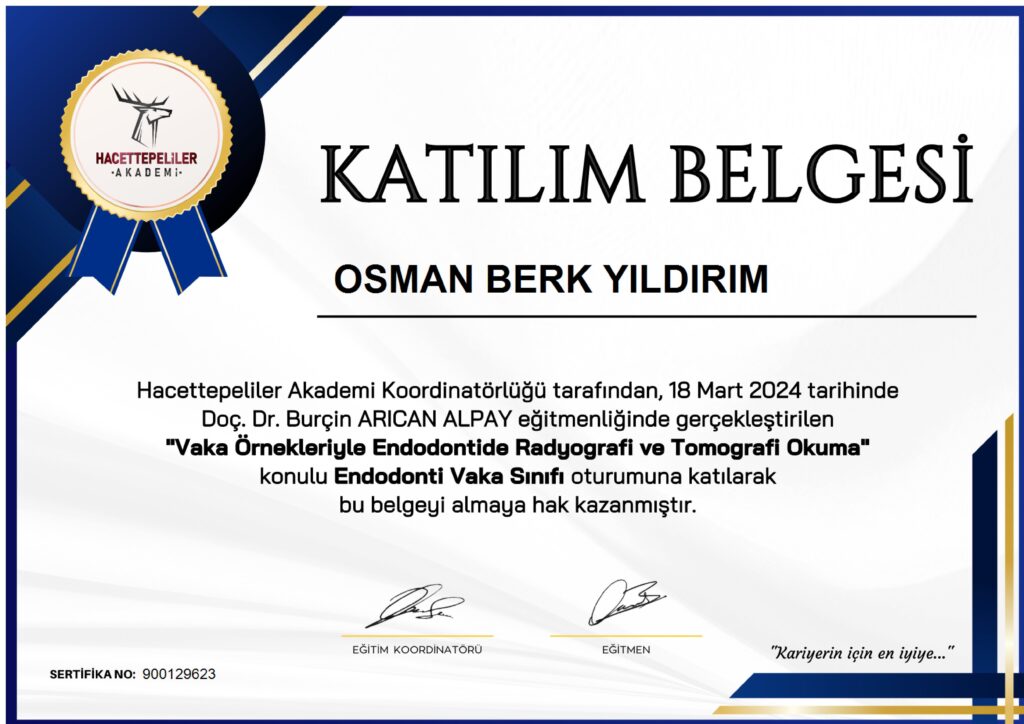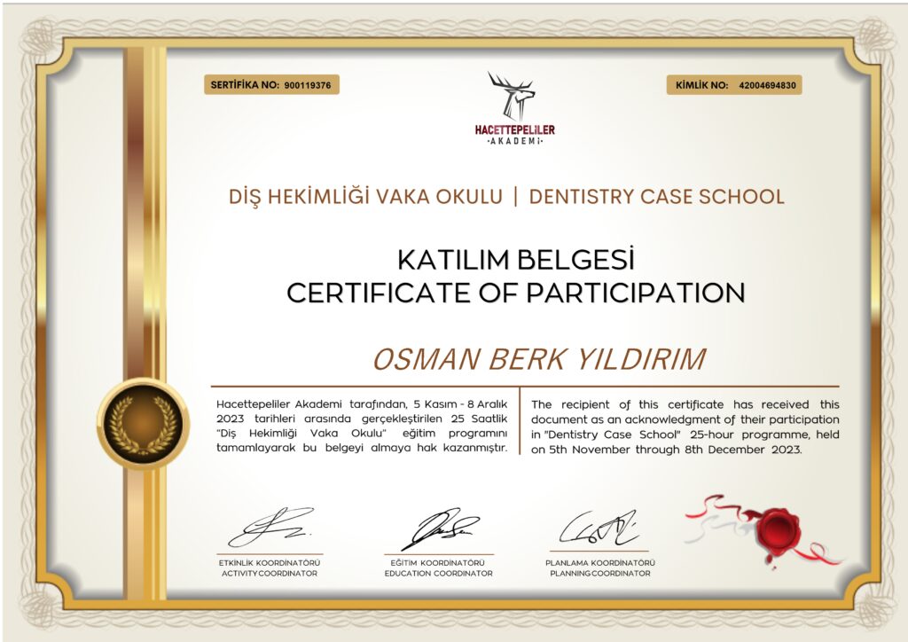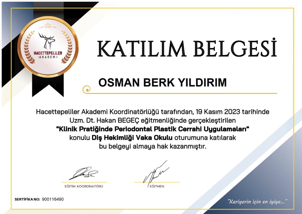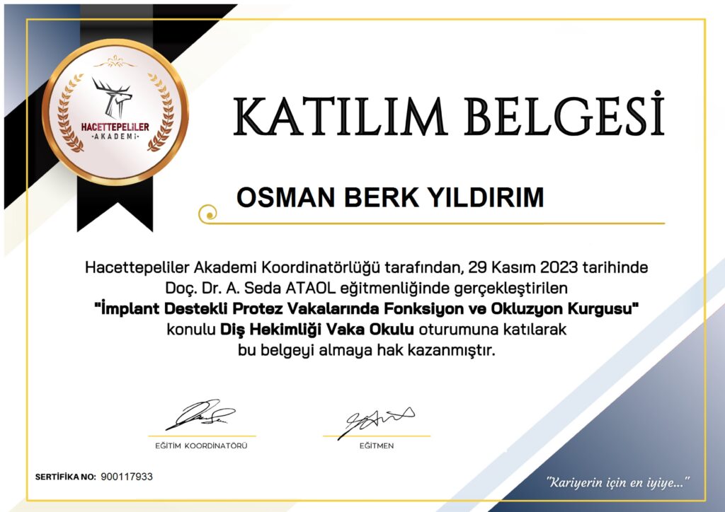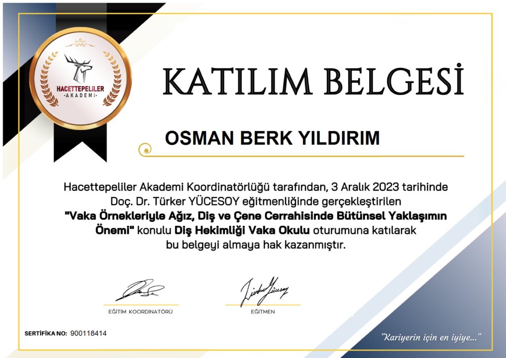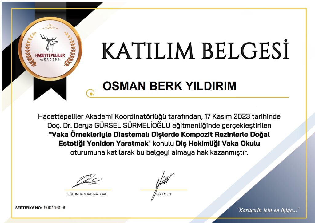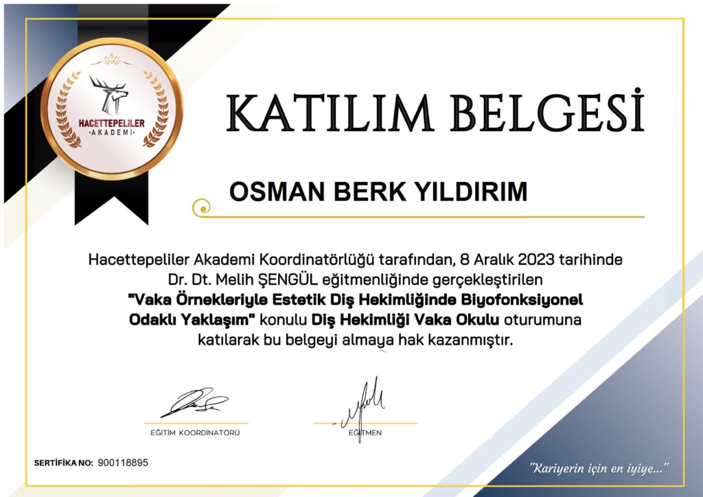 Abant İzzet Baysal Üniversitesi Diş Hekimliği Fakültesi’nden mezun olan Dt. Osman Berk Yıldırım, estetik diş hekimliği alanında uzun yıllar süren çalışmalarla kendini geliştirmiştir. Güler yüzlü ve profesyonel duruşu ile hastalarına sağlıklı ve estetik gülüşler kazandırmak için her zaman yenilikçi yöntemler kullanmakta ve detaylara verdiği özenle dikkat çekmektedir. Sıcak kanlı yaklaşımı sayesinde hastalarıyla özel bir bağ kurarak, mükemmel gülüşler elde etmek adına özveriyle çalışmaktadır. Kliniğimizdeki uzmanlığı, hasta odaklı hizmet anlayışımızı ve güvenilirliğimizi simgeler.